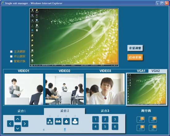 遠(yuǎn)程導(dǎo)播錄制方式則給予了電教人員更多的自由和發(fā)揮的余地,通過遠(yuǎn)程導(dǎo)播平臺,可以通過瀏覽器登錄系統(tǒng)平臺,操控云臺攝像機(jī)進(jìn)行錄制。只需要點(diǎn)擊鼠標(biāo)就能很好地對安裝在階梯教室里的云臺攝像機(jī)進(jìn)行上下左右轉(zhuǎn)動(dòng)和前后變焦的控制,而電教人員更能根據(jù)階梯教室使用類型預(yù)先設(shè)定6種變焦模式,讓云臺攝像機(jī)的操作更加快速和準(zhǔn)確。毫不夸張地講,通過導(dǎo)播平臺錄制的教學(xué)視頻,已經(jīng)非常接近人工導(dǎo)播的水平了。