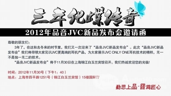 現(xiàn)在就讓我們攜手,延續(xù)“化蝶”的傳奇,在中國耳機(jī)市場,延續(xù)品音JVC耳機(jī)的傳奇。