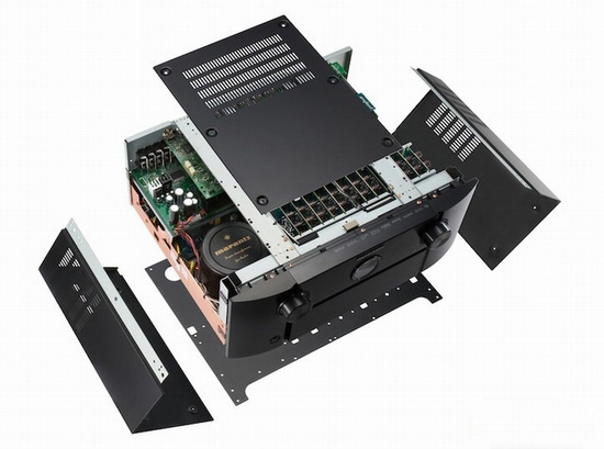 馬蘭士AV8801內(nèi)部的用料相當(dāng)高級,采用音頻級的電容、高速二極管等,讓整體音色更平衡,前面板為純鋁材打造,配合珍珠般的純黑絲滑工藝,外觀更高貴。箱體采用了銅鋼板制造,機(jī)身采用復(fù)合3機(jī)箱設(shè)計(jì),有效減少工作噪音和不良震動,為機(jī)體提供高剛性的基礎(chǔ),抑制振動。底盤為加厚的多層結(jié)構(gòu)(黑鋼板、鍍銅鋼板)底盤、配合了3層式頂蓋,顧及到振動和音質(zhì),機(jī)腳為對音質(zhì)產(chǎn)生極大影響的絕緣體采用無雜質(zhì)純銅切削制品,實(shí)現(xiàn)穩(wěn)固的基礎(chǔ)。