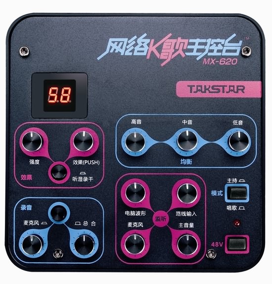 | 前言: 得勝科聲MX-620主控臺(tái),強(qiáng)大的功能,引用全新的設(shè)計(jì)概念,專門針對(duì)網(wǎng)絡(luò)K歌錄音而設(shè)計(jì),集成調(diào)音臺(tái)、聲卡、效果器及放大器為一體,調(diào)音臺(tái)式的音效旋鈕控制,全中文操作界面,調(diào)節(jié)更方便,即插即用,自帶48V供電,功能調(diào)試操作簡(jiǎn)單,兼容性強(qiáng)。 |