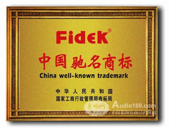 2010年10月,國(guó)家工商行政管理總局商標(biāo)局授予“Fidek飛達(dá)音響”一項(xiàng)具有國(guó)家商標(biāo)品牌管理中最高榮譽(yù)的“中國(guó)馳名商標(biāo)”稱號(hào)。中國(guó)馳名商標(biāo)是國(guó)家級(jí)的“金字招牌”,是一項(xiàng)含金量極高的知識(shí)產(chǎn)權(quán)保護(hù)認(rèn)證,更是唯一在全球范圍內(nèi)受國(guó)際法律保護(hù)的品牌標(biāo)志。此次摘得中國(guó)馳名商標(biāo)稱號(hào),不僅意味者飛達(dá)音響以優(yōu)良的品質(zhì)得到權(quán)威機(jī)構(gòu)的認(rèn)可,更是對(duì)飛達(dá)企業(yè)多年以來實(shí)施品牌戰(zhàn)略的真正肯定。
