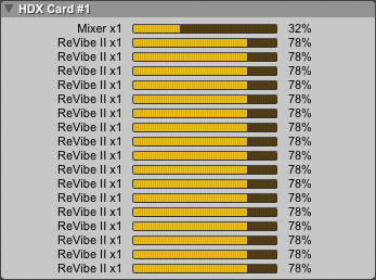 圖2:?jiǎn)螇KHDX卡的系統(tǒng)占用窗口,可顯示出每個(gè)DSP芯片處理了多少個(gè)插件