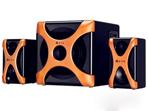 | 前言: 近日國內(nèi)知名多媒體有源音箱廠商金河田推出了一款名為黃金甲K1的音箱,其采用全木質(zhì)手工箱體,主副箱均采用高光面板加金色裝飾架,像黃花的花瓣兒。 |