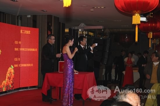 年會(huì)上,陶建新總經(jīng)理代表作為贊助方之一的華匯音響顧問有限公司,為現(xiàn)場嘉賓抽出幸運(yùn)者,并為其頒獎(jiǎng)并進(jìn)行了合影。