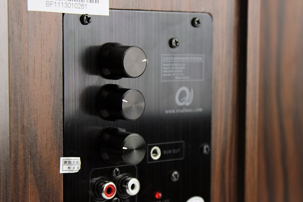與大多數(shù)多媒體音箱一樣,SVEN的散熱板同樣作為背板的一部分。前級(jí)提供高低音與音量調(diào)節(jié),用戶可根據(jù)自己的聽(tīng)音需求進(jìn)行相應(yīng)的調(diào)節(jié)。在背板上,我們還能發(fā)現(xiàn)預(yù)置了一個(gè)獨(dú)立的低音輸出接口,用于連接外置的有源超重低音,對(duì)于部分想提升低頻表現(xiàn)而要組建2.1系統(tǒng)的朋友,這樣的接口是十分必要的。