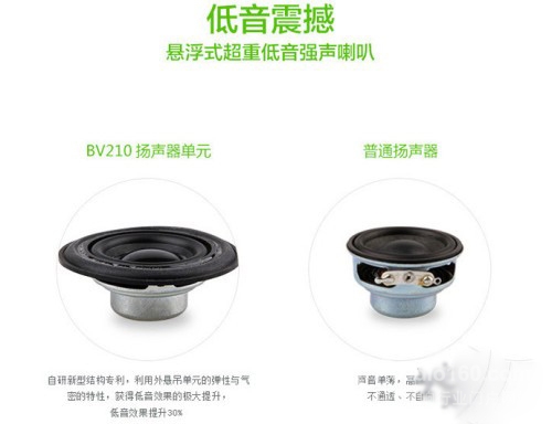 BV210摒棄了傳統(tǒng)揚聲器設置方法,而是通過將揚聲器單元設置在固定架上,增設雙環(huán)動態(tài)振膜,將有限腔體進行充分應用,提高聲頻的駐點交匯點,起到增強低頻下沉度的效果。同時進行動態(tài)增壓的原理,進行低頻動態(tài)增益,BV210整機音頻磅礴有力,瞬間動態(tài)強勁,是同類腔體音箱中的低頻最好的產(chǎn)品之一。