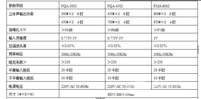 FMA系列功放的性能參數(shù):