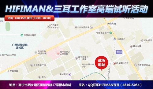 南寧及周邊地區(qū)的燒友請(qǐng)注意,十一長假后的第一個(gè)周末,HIFIMAN將與三耳工作室一起,為大家呈現(xiàn)一場高端試聽盛宴!無論臺(tái)式系統(tǒng)還是隨身系統(tǒng),高端設(shè)備,我們統(tǒng)統(tǒng)帶上!
