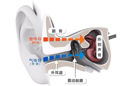 骨傳導(dǎo)作為技術(shù)名詞其實(shí)并不新鮮,在原理上指通過骨骼傳遞聲音,使聲音繞開耳膜直接到達(dá)內(nèi)耳耳蝸,使人體產(chǎn)生聽感。相比較傳統(tǒng)聲學(xué)耳機(jī),其并不需要將耳道堵住,因此能兼顧“外界聲音和播放器聲音”,也因此,作為運(yùn)動耳機(jī)的一個方向具有先天優(yōu)勢。