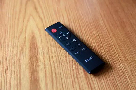 音箱的正面干凈清爽,除了顯示指示外,沒有任何操控的旋鈕按鍵,所有的都集中于一只具有多種復合功能的13鍵的小遙控器上。機箱的背板承載了整機所有的信號輸入端口:模擬輸入、光纖同軸輸入、HDMI ARC輸入、TF卡輸入、USB Audio輸入、USB輸入,加上本身的無線藍牙,可謂將當前流行的主流音源輸入都一網打盡了!利用這些音頻信號輸入端口,你可以無線連接手機、接駁CD機、PC、直播U盤及TF的無損音樂。