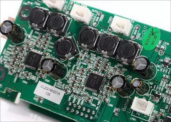 位于主電路板前方的那塊獨立安裝的電路板是典型的D類電源板,也就是本機的動力源泉,保證整機有60W的充沛音頻功率輸出,設計師選用了發(fā)熱量很小、換能效率很高的D類電源,D類數(shù)字電源在技術層面上已相當成熟,不僅僅電能轉換輸出功率的效能可以輕松達90%以上,發(fā)熱量很小,所提供的輸出功率也絕非模擬電源可比,同時可靠性程度相當高,且符合綠色家庭節(jié)能環(huán)保的要求,因而得到廣泛認可和大量的應用。