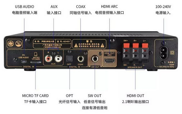 系統(tǒng)有八大輸入選擇,接口豐富,設備再多也不在話下。用戶可根據使用需求接入U盤、TF卡、電腦/筆記本、電視機、藍光DVD、機頂盒、游戲機以及一切擁有光纖/同軸/模擬輸出的音源設備。