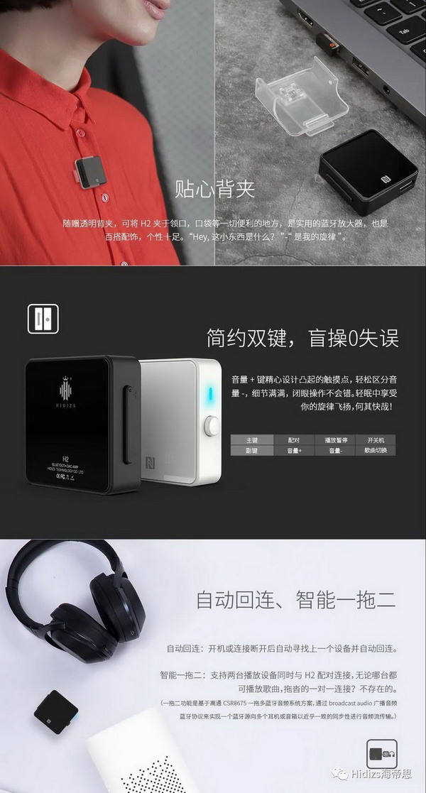 做了一款無線的便攜解碼產(chǎn)品,就是這個(gè)小可愛啦,無損音樂藍(lán)牙接收器H2。