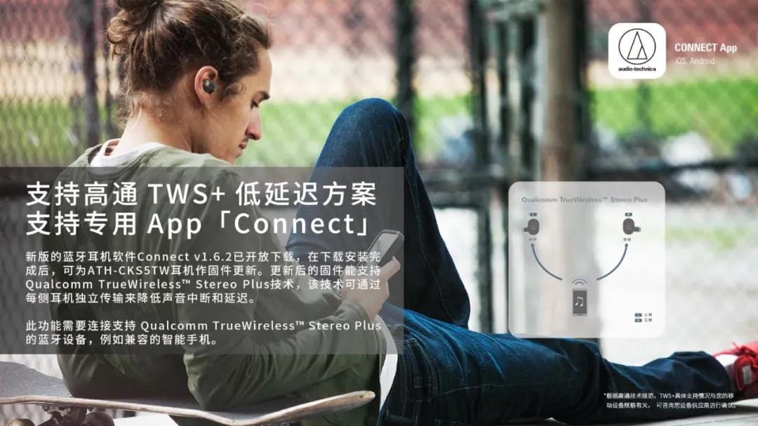 新版的藍(lán)牙耳機(jī)軟件Connectv1.6.2 已開放下載。在下載安裝完成后,可為ATH-CKS5TW 耳機(jī)作固件更新,更新后的固件能支持Qualcomm TrueWireless™ Stereo Plus技術(shù),該技術(shù)可通過每側(cè)耳機(jī)獨(dú)立傳輸來降低聲音中斷和延遲。
