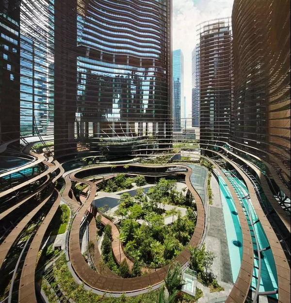 Marina One Residences鱗次櫛比的樓層間充滿了獨(dú)具熱帶風(fēng)情的花草樹木,城市中不乏靜謐,綠林中不乏繁華。業(yè)主足不出戶既可享受各類家庭影院文娛活動(dòng),又能時(shí)時(shí)刻刻投入大自然悠閑自在的懷抱中,生活的高品質(zhì)格調(diào)就這樣輕松彌漫在“城市花園”的中心。