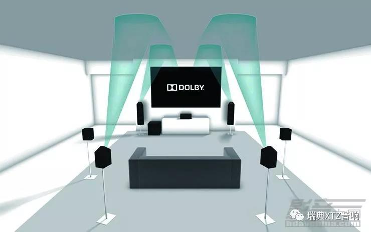 通常在原有的5.1聲道基礎(chǔ)上升級(jí)全景聲,有兩種實(shí)現(xiàn)的方案,一種是不用在頭頂天花板加裝揚(yáng)聲器,通過(guò)在原有主音箱上方擺放專用投音揚(yáng)聲器將聲音以固定角度向上投射,再由頂層天花板反射到人耳,達(dá)到天空移動(dòng)環(huán)繞的效果。