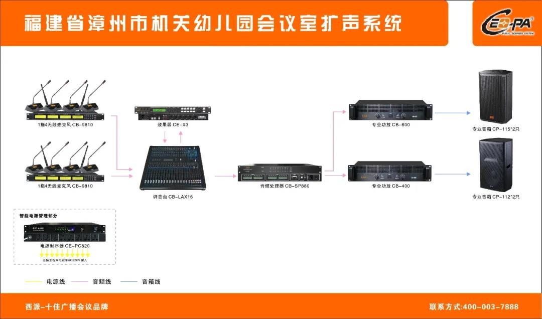1.整個擴(kuò)聲系統(tǒng)主要用于漳州市機(jī)關(guān)幼兒園,滿足客戶召開各種會議的使用需求