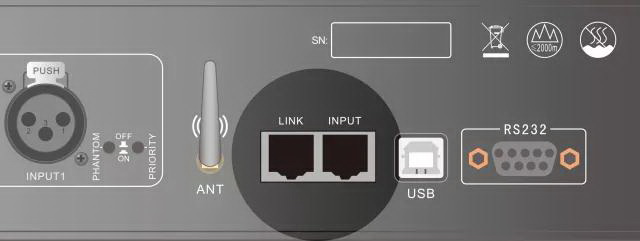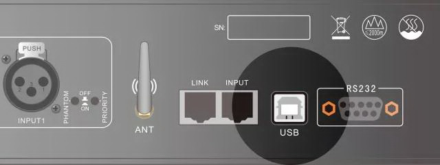后面板設(shè)有USB接口,即插即用功能,可連接計(jì)算機(jī)通過(guò)專(zhuān)用軟件, 對(duì)DSP所有功能進(jìn)行監(jiān)控及實(shí)時(shí)調(diào)節(jié)設(shè)置, 并可調(diào)節(jié)及控制液晶屏顯示內(nèi)容。
