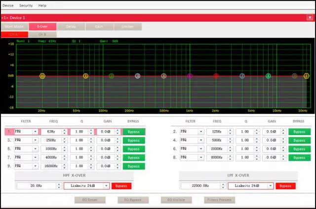 ▶包含均衡/壓限/高低通濾波器/延時(shí)/相位/靜音等功能