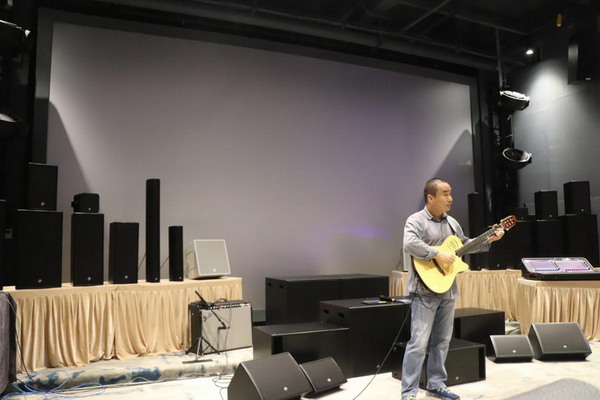 首先是由易科國(guó)際高級(jí)副總裁、文旅方向CTO張濤通過(guò)吉他Solo表演向大家演示了在實(shí)際演出下,如何同時(shí)使用主擴(kuò)聲系統(tǒng)和可變混響系統(tǒng)以帶來(lái)更好的音樂(lè)表現(xiàn)。