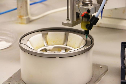 喇叭單元的大部分組裝步驟以及音箱障板的安裝均由手工完成 為了確保更高的生產(chǎn)效率,六年前DALI安裝了一臺了機器人,負責喇叭單元與箱體的粘合工作。膠水的用量經(jīng)過精確的計算,確保喇叭單元的運行不會受到膠水的影響。經(jīng)過觀察,膠水的使用量僅為0.08克,過量的膠水會導致音盆過于笨重,而膠水不足又會導致單元無法與箱體固定。最重要的是,膠水必須做到均勻覆蓋,才能保證箱體的氣密性,從而避免空氣泄漏引起箱體的振動和變形。因此DALI選擇用機器人來完成這道重要的工序。