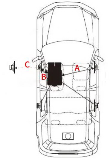 阿爾派的延時(shí)設(shè)置用差值法,就是用右邊喇叭到你右耳朵的距離(厘米),減去左邊喇叭到你左耳朵的距離(厘米),就是你左邊喇叭所需要延時(shí)的距離(厘米)?梢允褂镁沓吡恳幌拢褦(shù)據(jù)直接輸入到處理器左聲道,基本人聲音會(huì)在儀表臺(tái)中間發(fā)出來的,準(zhǔn)確性需要自己細(xì)調(diào)。如圖:A-B=C,C的數(shù)值就是延時(shí)數(shù)值。