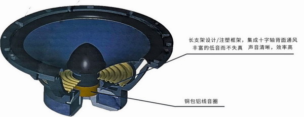 長支架設計/注塑框架輕量化而又堅固。銅包鋁的線圈,低音豐富而不失真,聲音清晰。在原車主機推動下能大大改善原車音效的不足,搭配上阿爾派音頻處理器調好音效后優(yōu)美人聲和大動態(tài)音樂一樣出色。