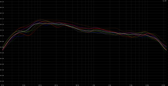 從預(yù)測結(jié)果可見,場地內(nèi)聲壓級均勻,且不同位置的頻率響應(yīng)趨勢接近一致。由此確保演奏廳內(nèi)的各個坐席均能有一致的聲壓級和音色的平衡,從而獲得更完美的聽音體驗。