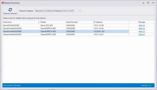 TesiraFORTÉ X 是新一代Tesira DSP處理器。TesiraFORTÉ X結(jié)合了多個(gè)以前Tesira系統(tǒng)的強(qiáng)大功能元素,以便在大中型會(huì)議空間中快速輕松地部署。設(shè)備可以使用Biamp Discovery 軟件尋找與連接,可以使用Tesira (4.0以上)或者SageVue去管理設(shè)備。