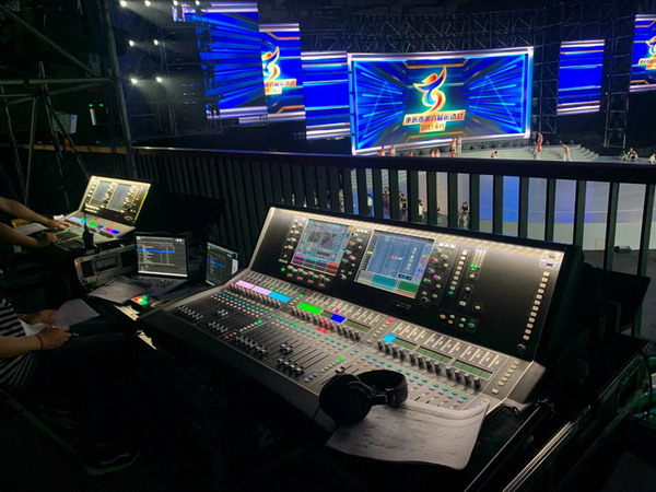 閉幕式現(xiàn)場擴聲系統(tǒng)采用聲揚雙十二寸線陣系統(tǒng)和單十寸線陣系統(tǒng)。主擴使用32只雙十二寸線陣列LA212,配合使用12只單十寸線陣列LA110作為舞臺側(cè)面監(jiān)聽,16只雙十八寸超低音箱補充低頻,舞臺上設置10只M15返送音箱為舞臺演員提供監(jiān)聽,舞臺中間前方使用8只全頻音箱P15覆蓋舞臺中前方。78只聲揚音箱渾然一體,融合成一個可覆蓋整片觀眾區(qū)及舞臺的擴聲系統(tǒng)。