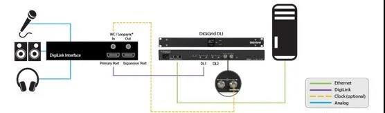 如果是HDX系統(tǒng)的大型現(xiàn)場錄音室(48個前置放大器通道),通過DLI可以將SoundGrid網(wǎng)絡(luò)中的I / O(DigiGrid IOX)接入到Pro Tools HDX系統(tǒng)中。
