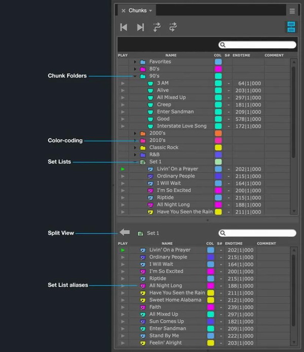 塊文件夾和播放列表:組織音序和歌曲到文件夾和播放列表。播放列表是現(xiàn)場演出構(gòu)建 set 列表的完美選擇。