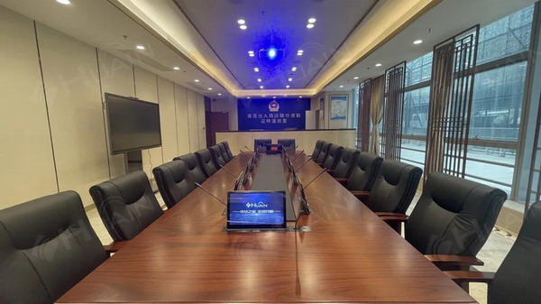 青茂海關9樓邊檢會議室也是裝備HUAIN華音無紙化會議系統(tǒng),采用鋁合金超薄一體式設計,快速穩(wěn)定升降,桌面干凈簡潔,在圓桌會議上方便參會者面對面交流,具有節(jié)能環(huán)保、提高效率、實用性強、操作便捷,統(tǒng)一管理、保密性強、安全穩(wěn)定、成本較低、全平臺兼容等優(yōu)勢。