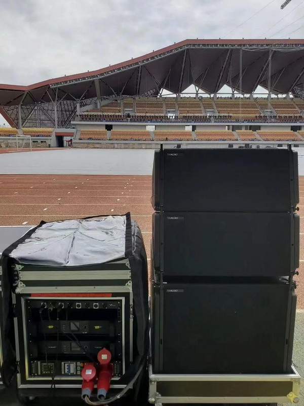 本屆運(yùn)動(dòng)會(huì)擴(kuò)聲系統(tǒng)采用了世界頂級(jí)音響品牌德國(guó)TWAUDiO高端揚(yáng)聲器系統(tǒng),主席臺(tái)面看臺(tái)采用8組2+1的VERA36+VERA S33主擴(kuò)組合,返送采用了4組左右鏡像對(duì)稱(chēng)的多功能全頻M12,每組2只,系統(tǒng)由8臺(tái)PLM12K44進(jìn)行驅(qū)動(dòng)。