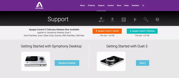 進(jìn)入Apogeedigital.com官網(wǎng),點(diǎn)擊Support頁面,在頁首就可以看到macOS和Windows系統(tǒng)的下載鏈接,直接點(diǎn)擊就可以下載。