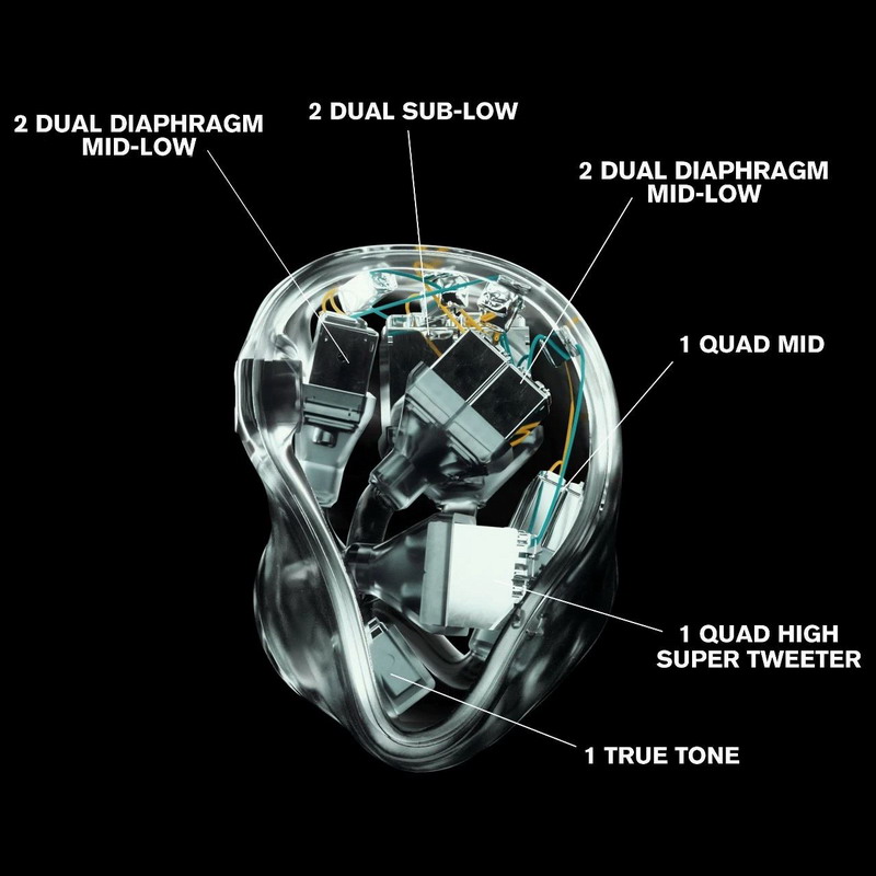 全新的旗艦級UE PREMIER綜合了UE前代產(chǎn)品的優(yōu)勢,各個參數(shù)相比上一代旗艦產(chǎn)品UE Live向前邁進一大步,其中單元數(shù)量從8個增加到21個,采用五分頻設計。21個單元里面保留了UE Live廣受好評的True Tone Plus高頻單元,另外還有一個最新與Knowles合作設計的由四個喇叭合在一起的Knowles Super Tweeter高頻單元,該單元據(jù)稱可以在較小的空間產(chǎn)出較穩(wěn)定和更具細節(jié)的聲音表現(xiàn),最高的頻率范圍可延伸到40kHz,讓聲音溫暖、豐富且具有空靈感。另外,它的雙Mid-low單元和雙Sub-low單元,可將頻譜加寬至5Hz。
