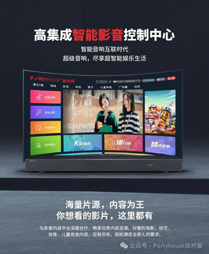 Partyhouse 派對屋作為智能影 K 領(lǐng)域的資深前輩,36年專業(yè)娛樂音響系統(tǒng)制造商,具有美國杜比實(shí)驗(yàn)室(DOLBY)及HDMI公司正規(guī)授權(quán)并認(rèn)證,超30人的研發(fā)團(tuán)隊(duì),知識產(chǎn)權(quán)包括19項(xiàng)軟件著作權(quán)、20項(xiàng)注冊商標(biāo)以及83項(xiàng)專利,“國家高新技術(shù)音響企業(yè)”、“專精特新企業(yè)”、“廈門市科技小巨人領(lǐng)軍企業(yè)”。線下服務(wù)商800余家,門店200余家,從影音娛樂到全屋智控,多維產(chǎn)品為用戶打造全屋智能娛樂影K解決方案。
