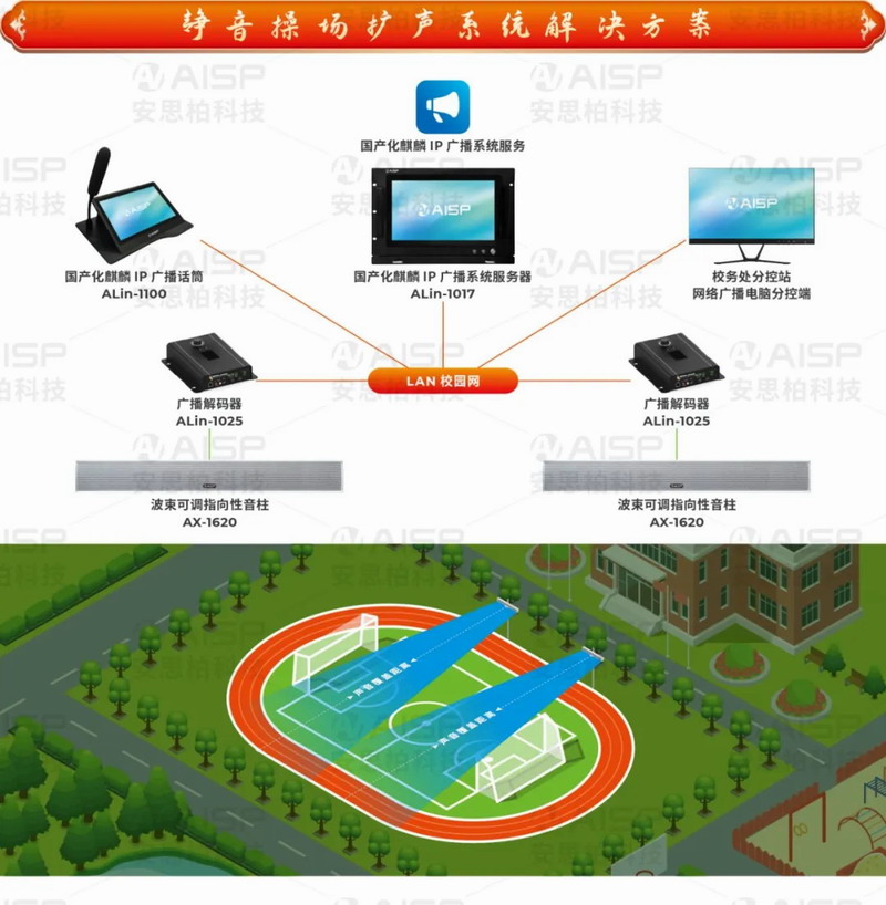 解決校園操場擴(kuò)聲覆蓋等難題,安思柏科技推出靜音操場擴(kuò)聲解決方案。方案采用先進(jìn)的聲學(xué)技術(shù)和擴(kuò)聲設(shè)備,實現(xiàn)聲音的高清傳播和均勻覆蓋,同時有效降低噪音干擾,為師生打造一個舒適、寧靜的運動環(huán)境。