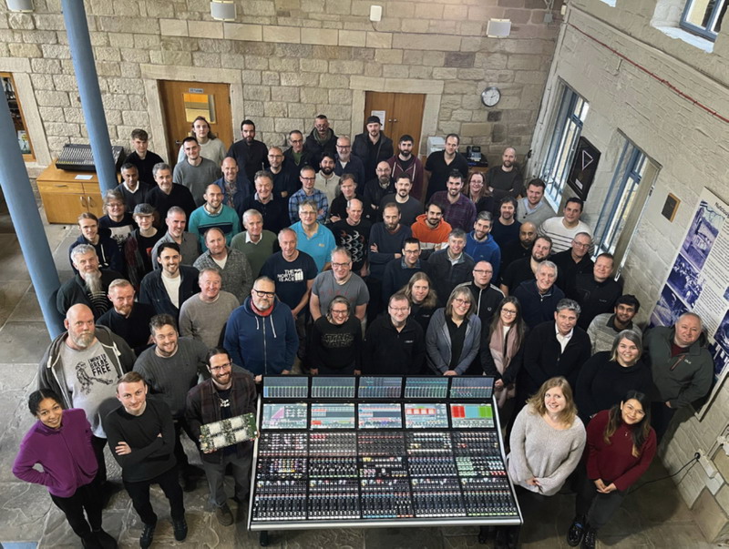 Calrec總部的品牌團(tuán)隊(duì)與Argo M控制臺(tái)合影