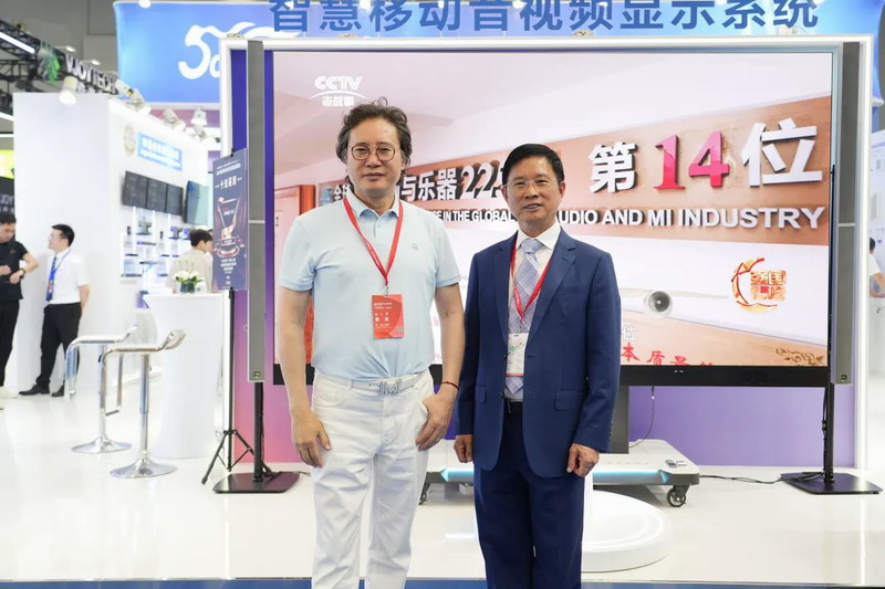 與音王合作錄制了新版沉浸聲《東方紅》的著名音樂家戴玉強(qiáng)也參觀了音王展位,并對(duì)音王各類創(chuàng)新科技產(chǎn)品給予高度評(píng)價(jià)。