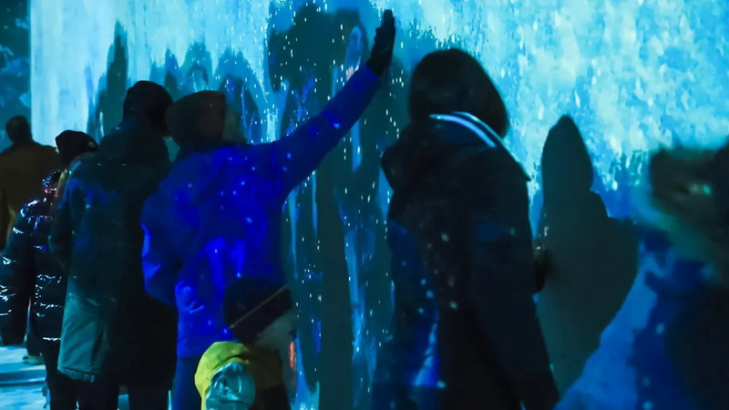在預(yù)演環(huán)節(jié),每位游客可激活一個跟隨其動作在沉浸式空間中移動的粒子系統(tǒng)。在另一段節(jié)目中,整個房間被轉(zhuǎn)化為雪景,游客的手勢會逐漸在墻壁和地板上揭示投影紋理!白粉櫹到y(tǒng)基于Ouster的3D LiDAR傳感器用于地板,以及一臺Hokuyo UST-20LX 2D LiDAR用于每面墻壁,”Quentin Grêlé解釋道!盎芋w驗流暢、響應(yīng)迅速,并設(shè)計為即使在滿員觀眾情況下也能正常運行!