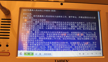 深圳臺電公司今日在京向1000多位業(yè)內(nèi)專家、海內(nèi)外客商、媒體記者展示了具有自主知識產(chǎn)權(quán)、全球首創(chuàng)的TAIDEN無紙化多媒體會議系統(tǒng)。 |
